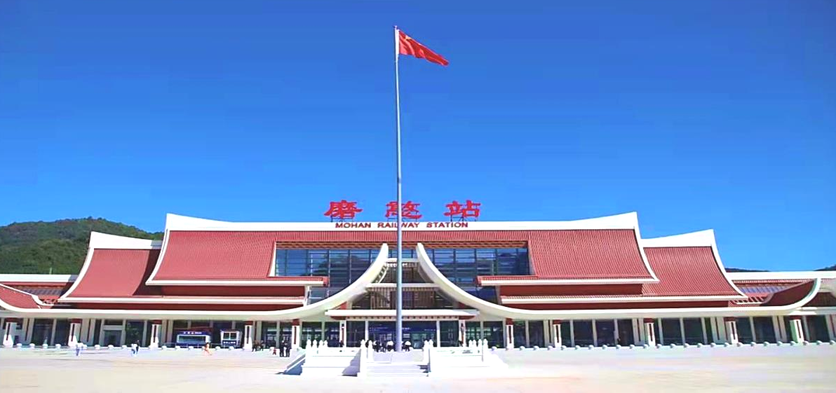 4.墨江站位于云南省墨江哈尼族自治縣聯(lián)珠鎮(zhèn)癸能村,距離縣城區(qū)約8公里。墨江站為側(cè)平式站房,主體建筑面積4990平方米,地上1層(兩側(cè)夾層),地下局部1層,最高聚集人數(shù)600人。旅客乘降站臺(tái)2座、到發(fā)線3條。采用驗(yàn)檢合一的進(jìn)站檢票模式,設(shè)商務(wù)候車室、母嬰候車室及重點(diǎn)旅客候車區(qū)。