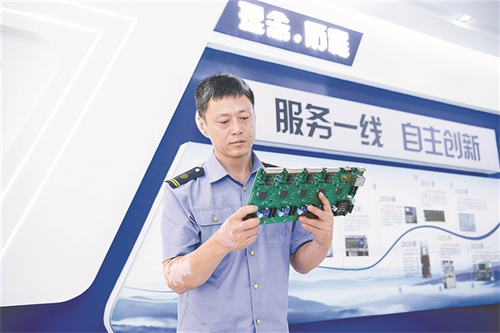 “用這個(gè)試驗(yàn)臺(tái)給受電弓閥板做‘CT’,能精準(zhǔn)檢測(cè)內(nèi)部電路板上精密配件的運(yùn)行情況?!北本┸囕v段北京西檢修車間副主任、“王勇創(chuàng)新工作室”領(lǐng)軍人王勇說。他帶領(lǐng)團(tuán)隊(duì)與路內(nèi)外專家強(qiáng)強(qiáng)聯(lián)手,研發(fā)了“CR400AF動(dòng)車組受電弓閥板檢修試驗(yàn)臺(tái)”,率先實(shí)現(xiàn)復(fù)興號(hào)動(dòng)車組受電弓全過程、全流程、全要素的自主修。